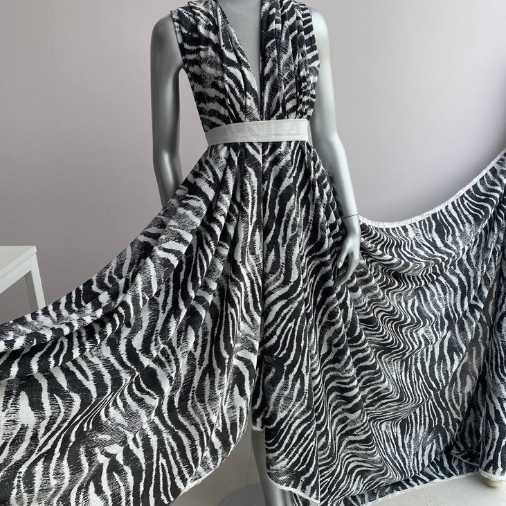 Купуйте батист із принтом “сіро-чорна зебра” — створюйте виразні речі з якісної італійської тканини!