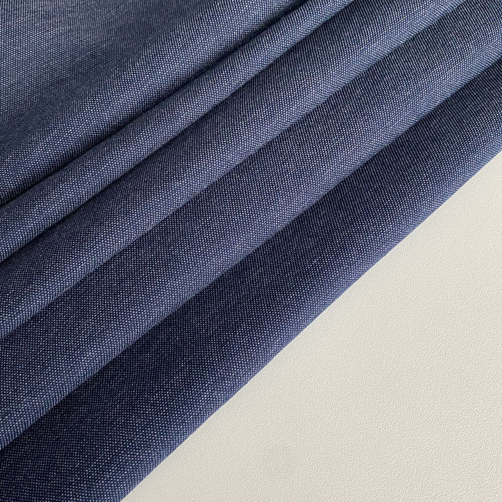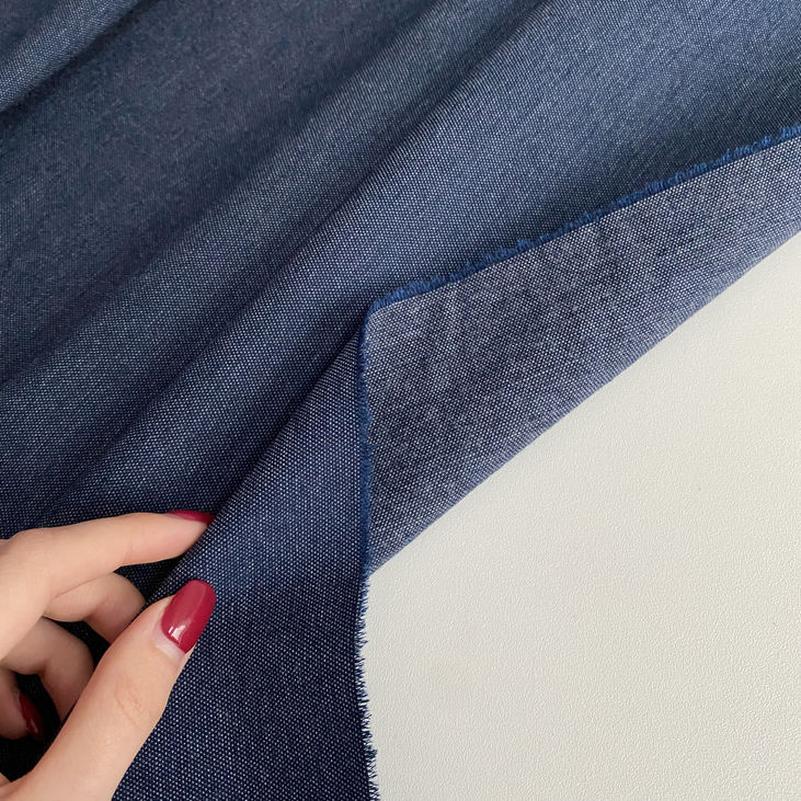 Цей котон-джинс має приємний меланжевий відтінок синього кольору, що додає матеріалу глибини та візуального об’єму