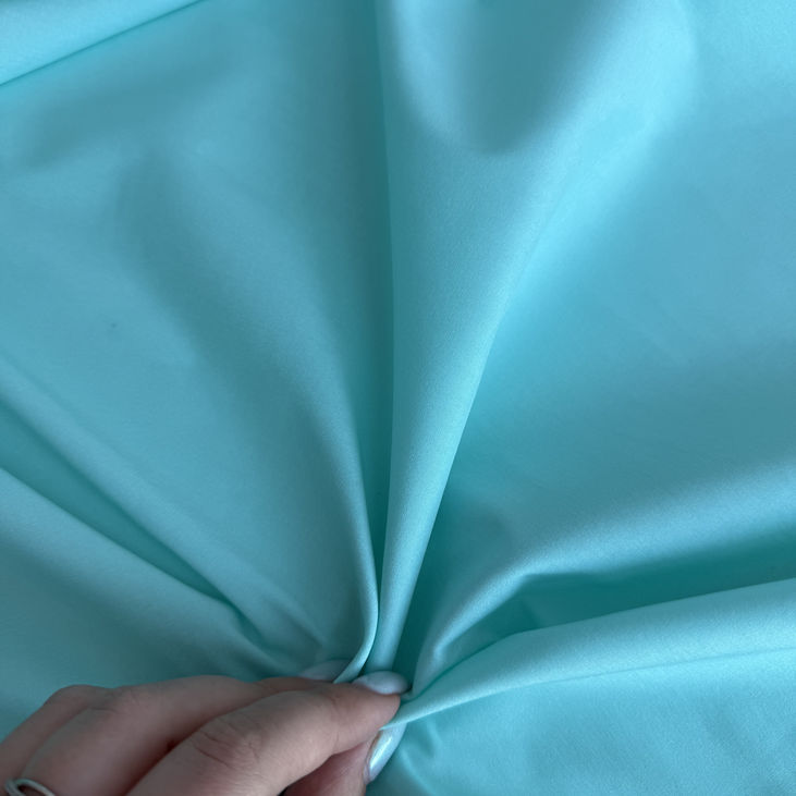 Ніжний м’ятний відтінок поєднується з еластичністю та натуральністю котон-попліну, створюючи ідеальну тканину для комфортного і стильного одягу. Ідеальна для сорочок, суконь, легких штанів, костюмів
