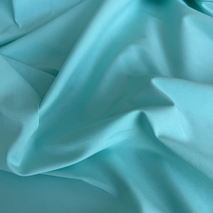 Замовляйте котон-поплін стрейчовий м’ятного кольору для яскравих і комфортних речей з натуральних матеріалів.
