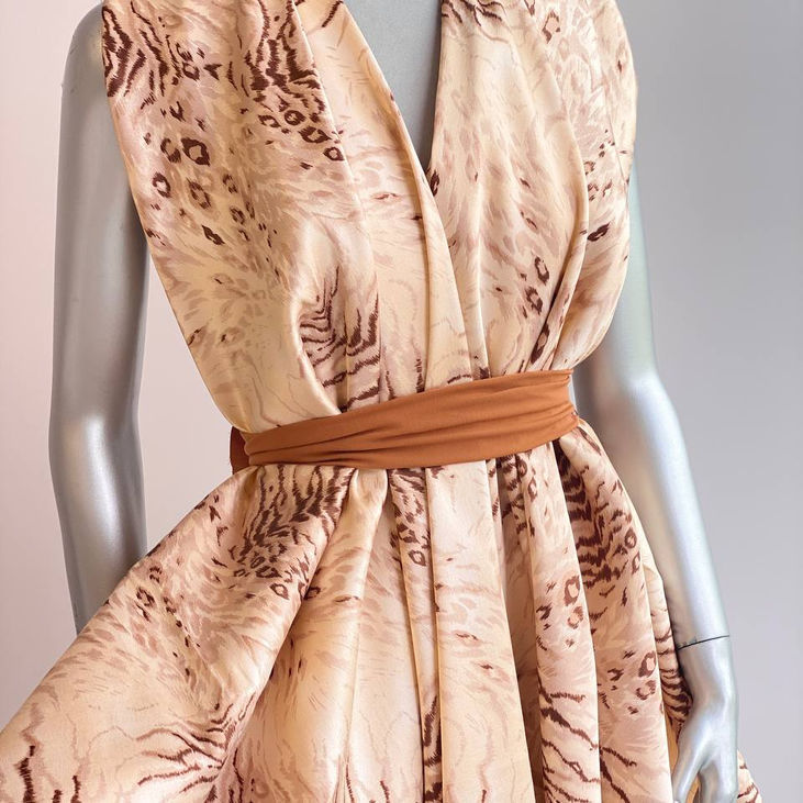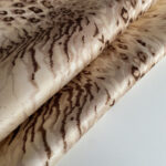 Цей преміальний італійський котон-сатин вирізняється унікальним абстрактним енімал дизайном в теплих відтінках мокко мусс на ніжному бежево-нюдовому фоні