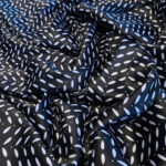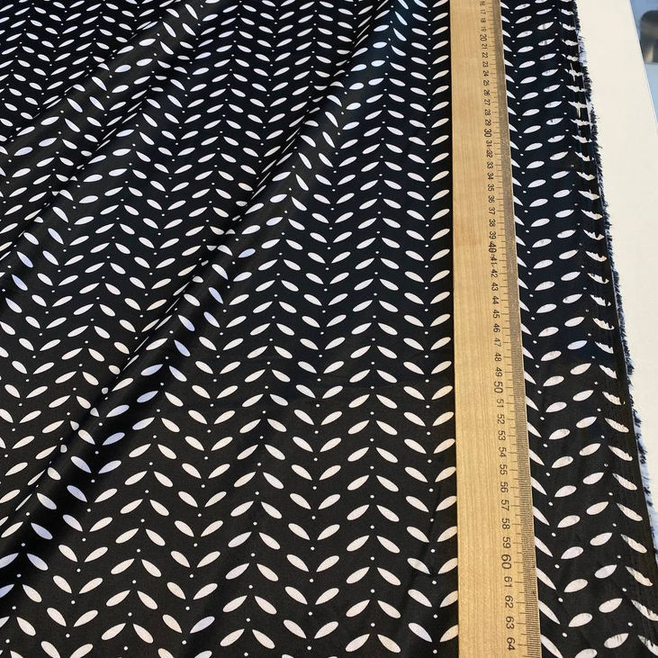 Глибокий чорний фон надає тканині глибини та універсальності, а дрібний білий принт у формі тендітних листочків створює враження ніжності та природної грайливості.
