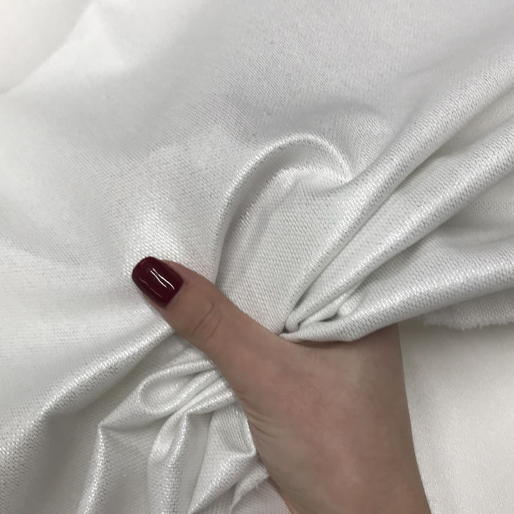 Замовляйте котон стрейч Італія білого кольору зі срібним напиленням — тканина для створення оригінальних і зручних виробів. Доставка по Україні.