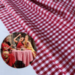 Натуральний котон у класичну клітинку: темно-червоні лінії формують клітинку розміром 8 мм на чисто білому фоні.