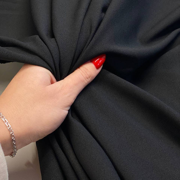 Купити креповий шифон чорного кольору (не стрейч) можна з доставкою по Україні. Мінімальне замовлення — від 1 метра. В наявності також оптові ціни при великих об’ємах.