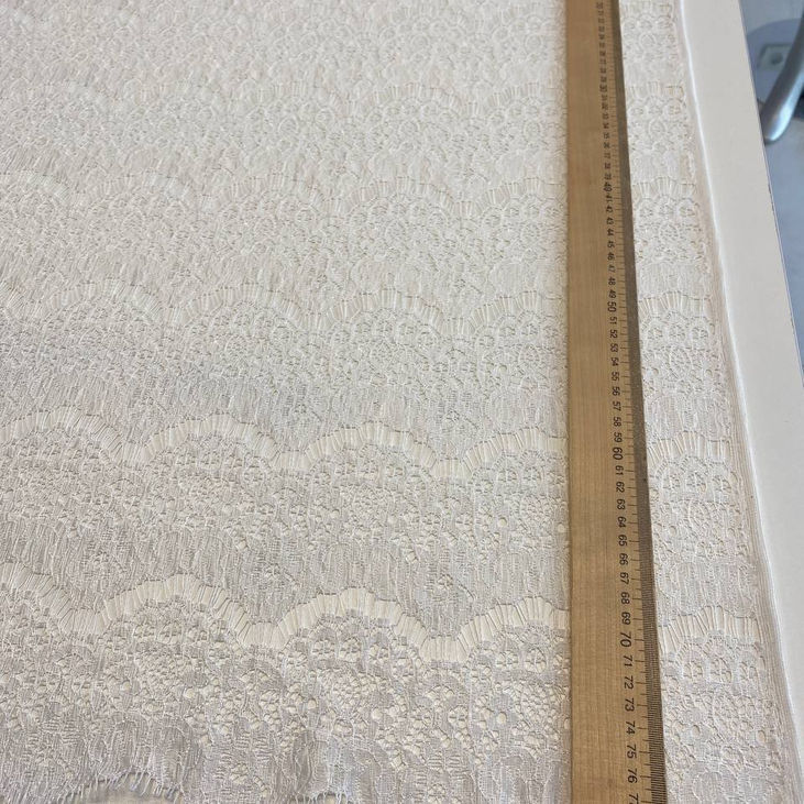 Ніжне та елегантне мереживне полотно білого кольору з делікатними “ресничками” по краю — ідеальний варіант для створення весільного, святкового або романтичного образу.