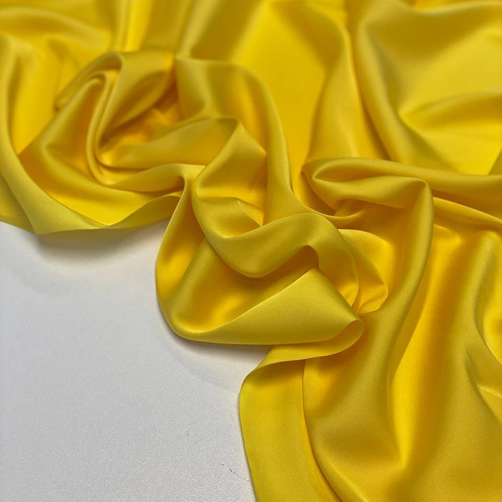 Розкішний однотонний шовк стрейч у яскравому жовтому кольорі — це поєднання блиску, елегантності та комфорту.