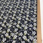 Глибокий чорний фон служить благородною основою для абстрактного флористичного візерунка: дрібні біло-жовті квіточки ненав’язливо розсипані по поверхні, створюючи візуальний ритм і свіжий настрій