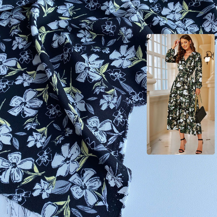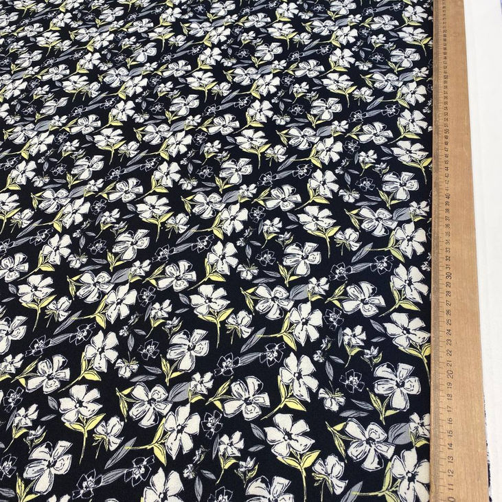 Будьте першим, хто залишив відгук на “Платтяна крепова тканина чорного кольору з абстракційними біло-жовтими квіточками”