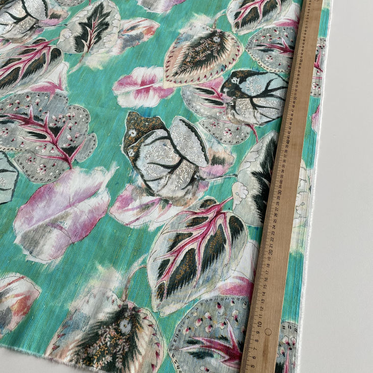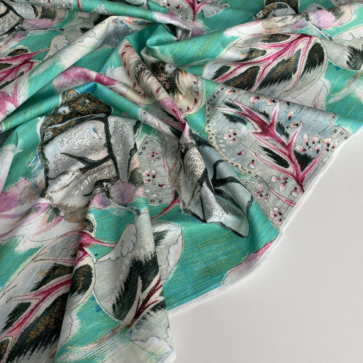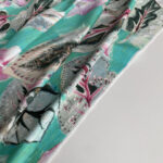 Полірований котон-сатин Італія з абстрактними квітами сакури на бірюзовому фоні