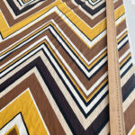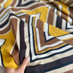 Полірований поплін-батист зі стильною графікою коричнево-жовтого та чорного кольорів на світло-бежевому фоні