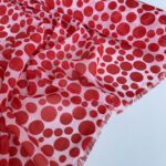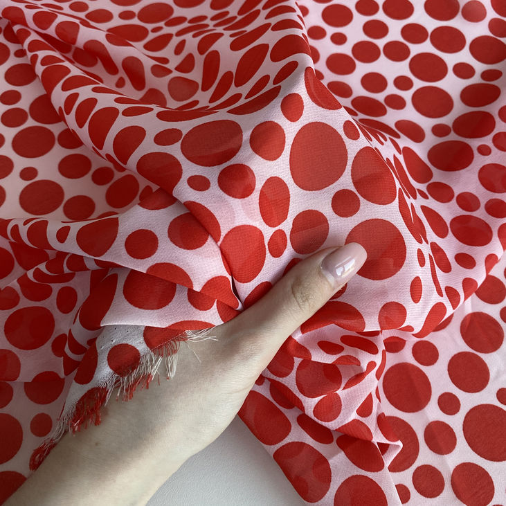 Рекомендації: Ця тканина чудово виглядає в фасонах з воланами, драпіруванням або легким об’ємом. Через прозорість рекомендовано використовувати підкладку або комбінацію з іншими тканинами. Ідеально поєднується з чорним, білим, сірим, червоним або ніжно-рожевим кольорами для стильних та контрастних луків.