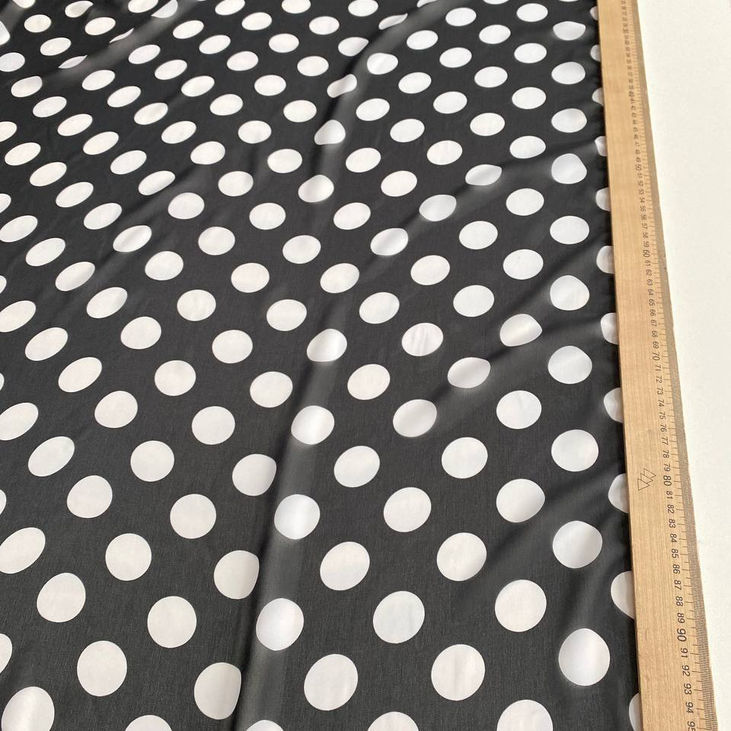 Купити прозорий шифон чорний з білими горошками 2×2 см — відмінне рішення для створення стильних, жіночних і ефектних речей. Оперативна доставка по Україні та професійна консультація.