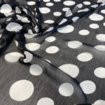 Прозорий шифон чорний з великими білими горошками 4,5×4,5 см