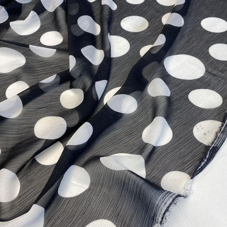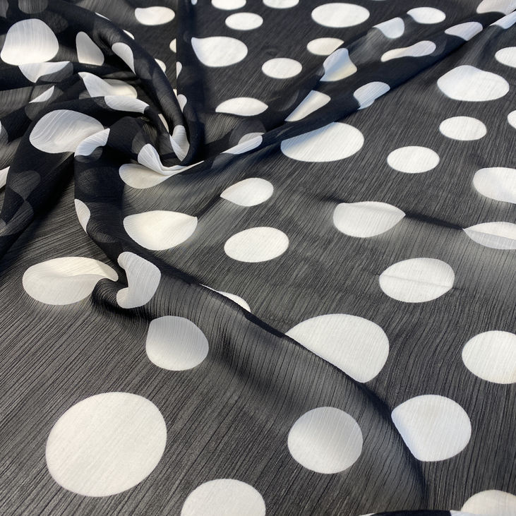 Будьте першим, хто залишив відгук на “Прозорий шифон чорний з великими білими горошками розміром 4,5*4,5см”