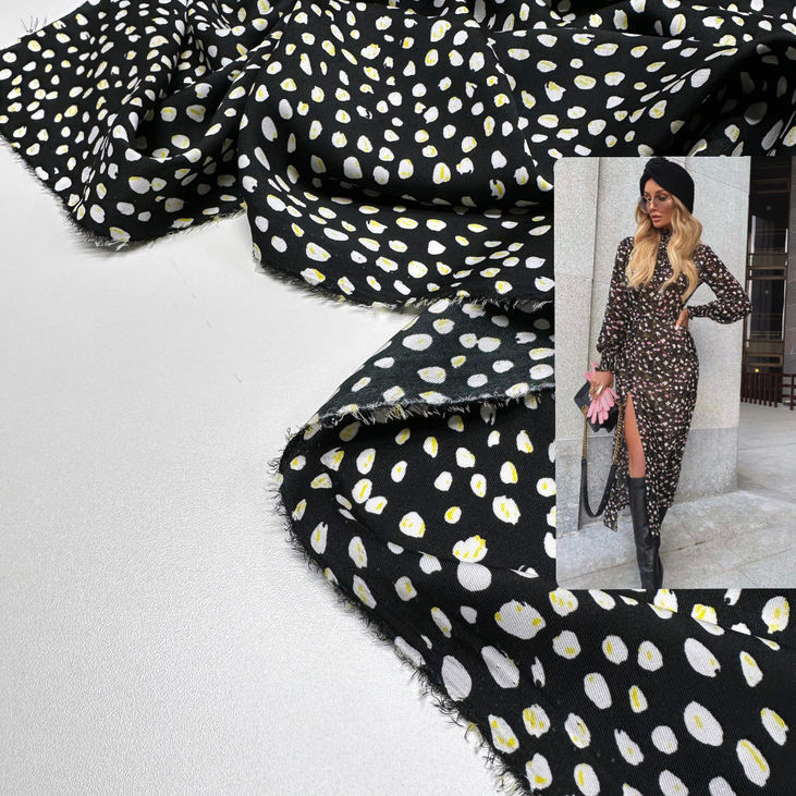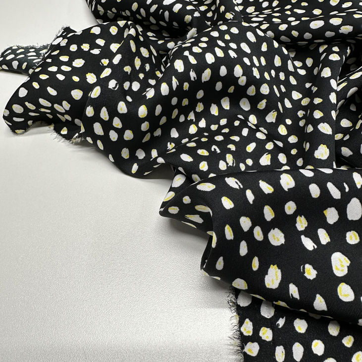 Італійський шовк чорного кольору з дрібними білими ляпками та жовтим контуром