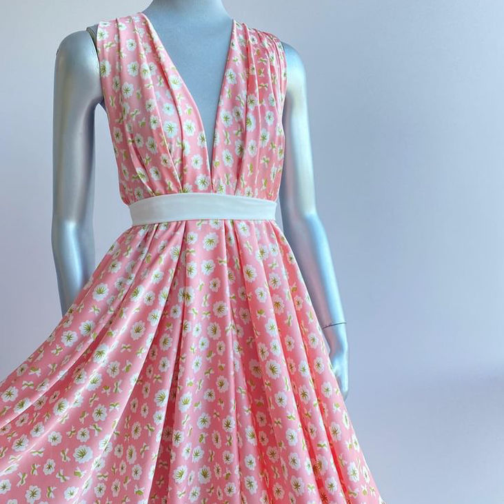 Тканина має легку, струмку текстуру, природний блиск і відмінну драпірувальність, що робить її ідеальним вибором для романтичного та свіжого образу.