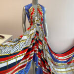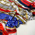 Будьте першим, хто залишив відгук на “Шовкова тканина графічна абстракція зі смужками а горошками в синьо-червоно-чорній гамі”