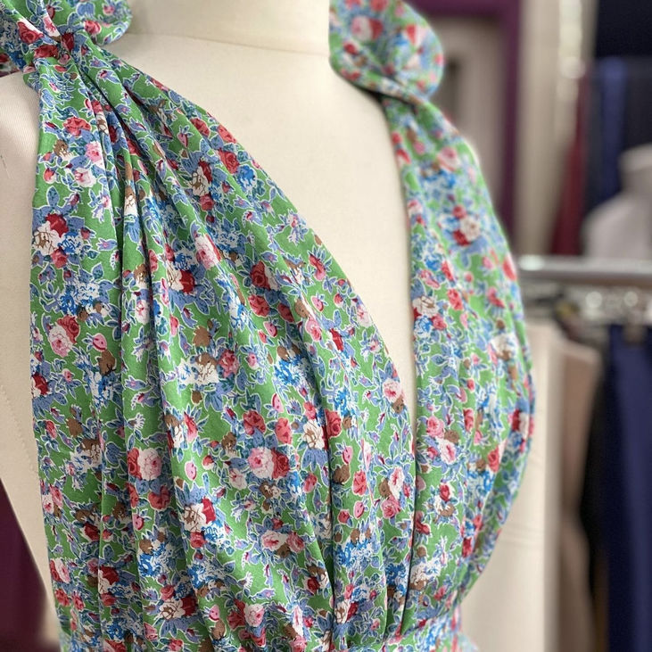 Тканина має м’яку, шовковисту поверхню, що плавно драпірується і підкреслює природну легкість силуетів. Водночас нейлонова складова додає міцності та еластичності, що робить вироби більш довговічними і зручними у носінні. Ідеальна для літнього одягу і аксесуарів