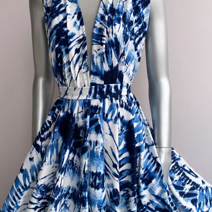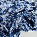 Переваги тканини: Комфортна і дихаюча , має сучасний абстрактний принт “Віяло” — гармонійне поєднання синіх тонів на білому фоні