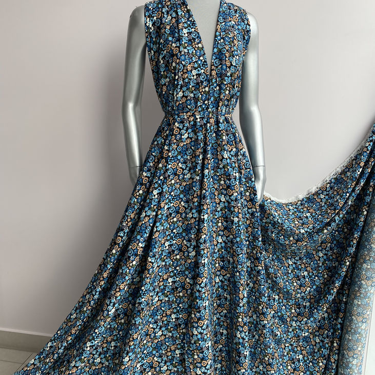 Елегантний принт — вдалий для будь-якого віку, темний фон та ніжний малюнок із блакитно-коричневими квіточками й листочками — це універсальний дизайн, який легко адаптується під різні вироби.