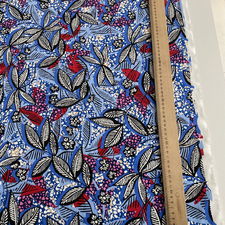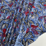 Штапель віскозний із чорно-червоним листям на блакитному фоні