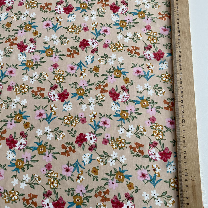 Штапель віскозний «Ніжний квітковий дизайн на світло-бежевому фоні»