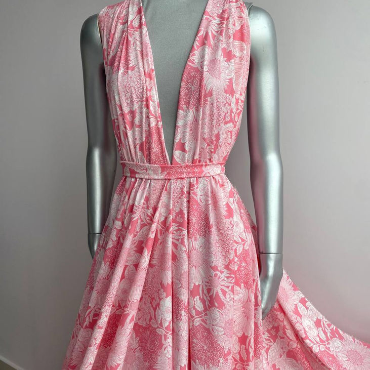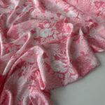 — легка та повітропроникна тканина з витонченим романтичним принтом. Мереживні білі квіти соняшників створюють ніжний і повітряний малюнок на ніжно-рожевому фоні, додаючи виробам жіночності та легкості.