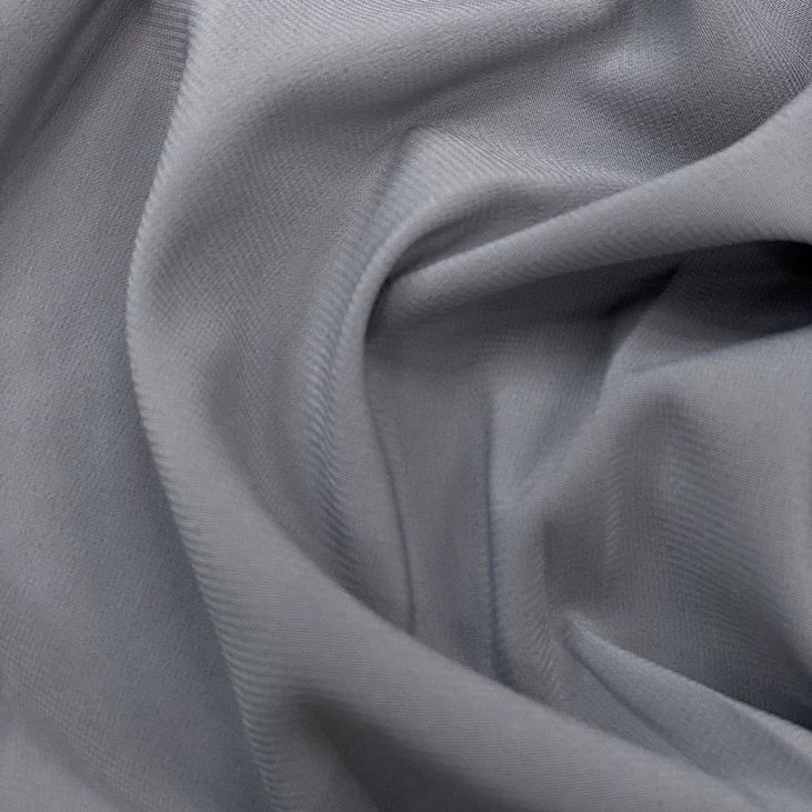 Легкий, ніжний та одночасно практичний гладкий стрейчовий шифон світло-сірого кольору — ідеальна тканина для створення стильного та комфортного одягу.