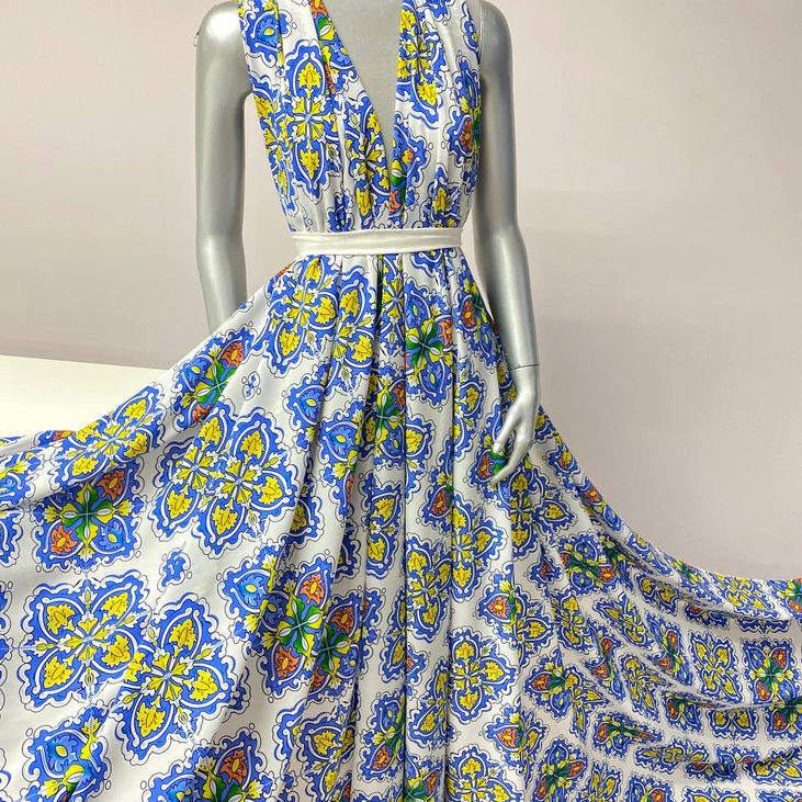 Підходить для пошиття: суконь у середземноморському стилі, літніх сарафанів, блуз, тунік, спідниць, які хочеться носити на відпочинку біля моря, легких костюмів або комбінезонів, що вирізняються оригінальністю, дитячих суконь, сімейних луків, піжамного одягу класу “елегант”.