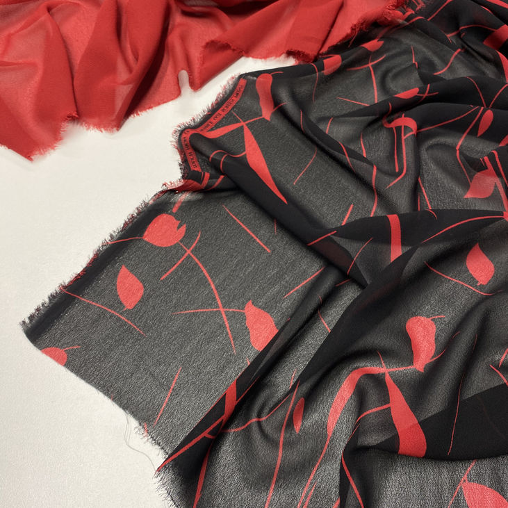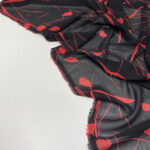 Купити шифон креп чорний з темно-червоними абстрактними тонкими квітами — відмінний вибір для стильних та сміливих образів. Швидка доставка по Україні і професійна консультація.