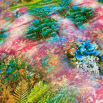 Купити шифон з акварельним фотопринтом тюльпанів у бірюзово-рожевій гамі — вибір для тих, хто цінує красу природи і комфорт у повсякденному стилі.