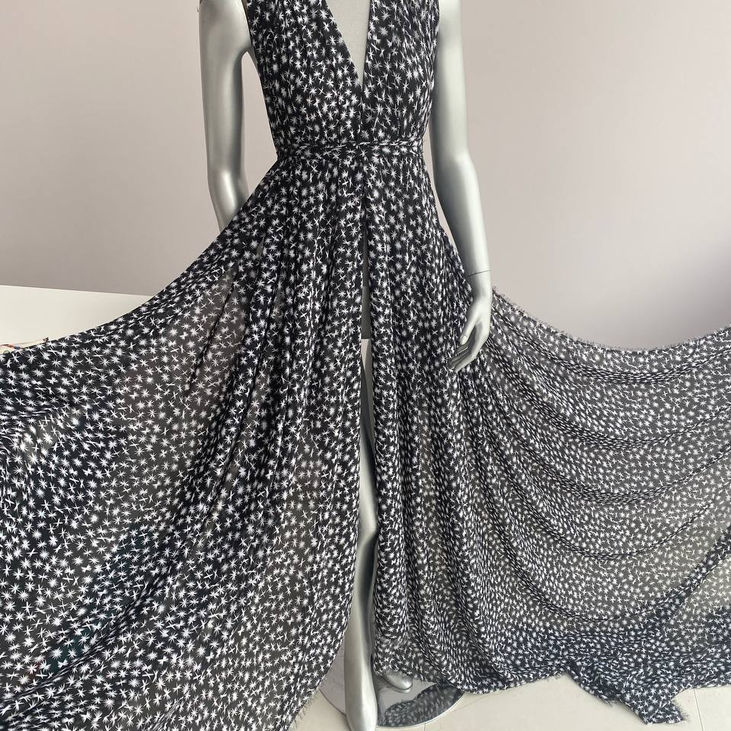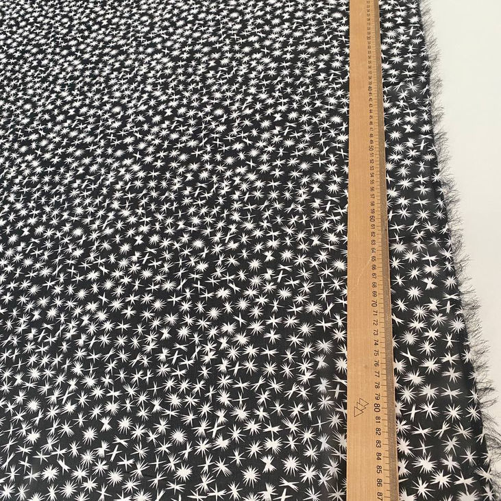 Купити шифон чорний з білим малюнком у вигляді зірочок — ідеальний вибір для створення неповторних і стильних виробів з ноткою грайливості. Швидка доставка по Україні та консультації з підбору тканини.