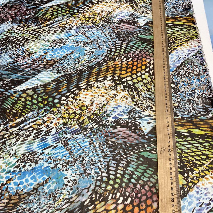 Переваги тканини: Яскравий і оригінальний принт, що притягує погляд. Легка і повітряна, приємна на дотик. Добре драпірується, не мнеться. Ідеальна для створення жіночних та креативних образів