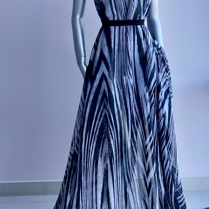 Принт — це справжня знахідка для поціновувачів графічної класики з характером. Великі хвилеподібні абстрактні смуги у чорно-білій гамі нагадують мотиви зебри, додають динаміки та стилю. Цей малюнок виглядає сучасно, ефектно й водночас універсально — підходить як для міських образів, так і для відпочинку на узбережжі.