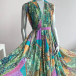 Шифон з принтом у бірюзово-ліловій гамі з печворк-дизайном, горошками та візерунком “огірки”