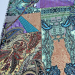 Будьте першим, хто залишив відгук на “Шифон принт в бірюзово-ліловій з зеленим та коричневій гамі з елементами печворк, горошків та огірків”
