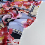 На чистому білому тлі розквітають виразні великі квіти, доповнені графічними чорними елементами, які ніби окреслюють контури краси. Такий принт виглядає по-особливому: він сильний, але не агресивний; стильний, але не надмірний; вишуканий — як дизайнерський акцент на витонченій фігурі.