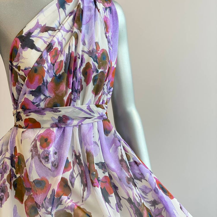 Переваги : Тканина майже невагома, прозора, надзвичайно м’яка на дотик. Вона дихає, не парить у спеку, огортає тіло легким серпанком і дарує відчуття свободи. Гарно лягає в драпірування, струмує в русі, створюючи м’які, летючі силуети. Саме така фактура дозволяє створювати речі, які виглядають легко, повітряно й по-справжньому витончено.