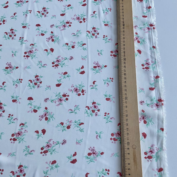 Купити шифон з червоно-салатовим дрібним квітковим принтом на білому фоні — це вибір для тих, хто цінує комфорт, свіжість і жіночність в одязі. Швидка доставка по Україні, індивідуальний підбір тканин.