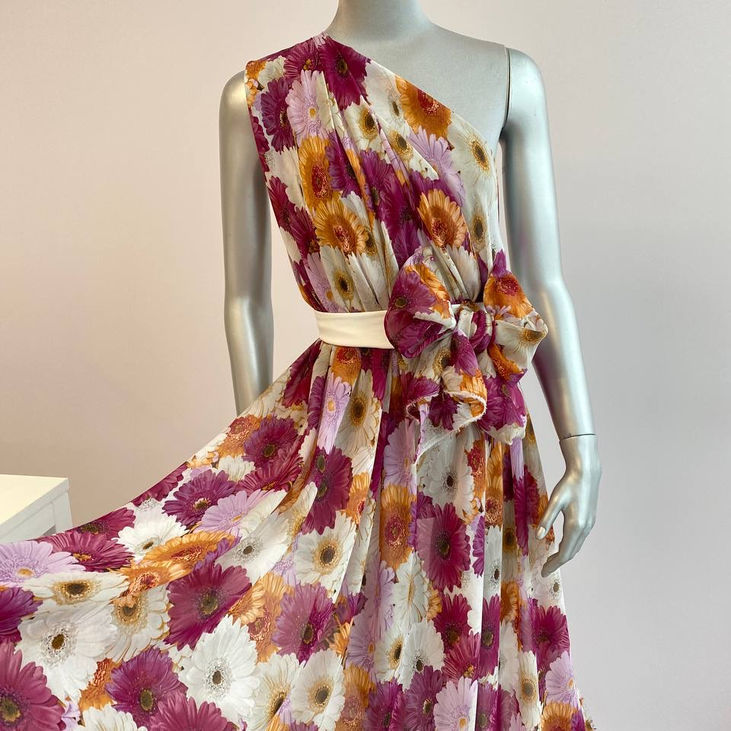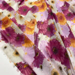 Великі рожево-жовті гербери, розкидані по білому фону, створюють ефект свіжості, радості та світла. У цьому принті — чиста енергія літа, відкритість емоцій і природна краса, що не потребує прикрас. Білий фон робить візерунок ще більш контрастним і виразним, а кольорова палітра — заряджає настроєм щастя та тепла.