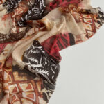 Шифон зі скандинавським етно-принтом у коричнево-теракотовій гамі на бежевому фоні