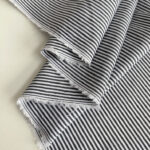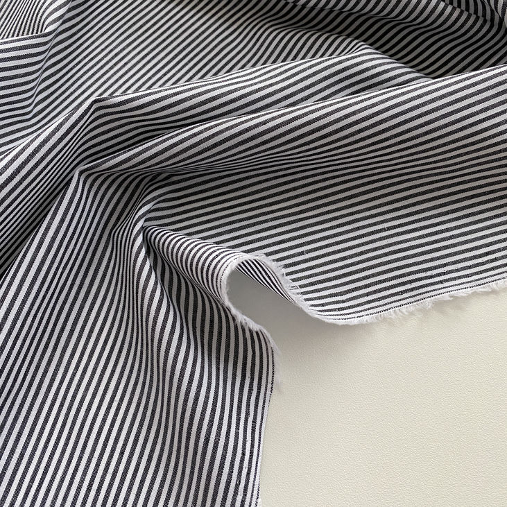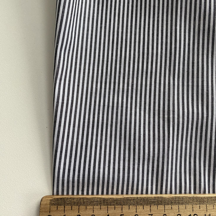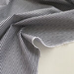 Сорочковий котон з вертикальною смужкою шириною 2 мм у сіро-білій кольоровій гамі виглядає стримано, стильно та завжди доречно.