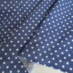 Стрейч котон синьо-блакитний з білими горошками 4 мм