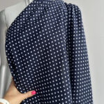 Будьте першим, хто залишив відгук на “Стрейч котон темно-синього кольору з білими горошками діаметром 4мм”