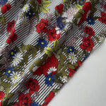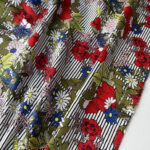 Елегантний стрейч котон з квітковим принтом на фоні чорно-білих смужок (ширина чорної смуги — 2 мм, білої — 4 мм) — це стильне поєднання класики та романтики.