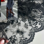 Вишуканий стрейчовий гіпюр глибокого чорного відтінку з делікатною вишивкою квітів та стильними фігурними фестонними кромками по краю — ідеальний вибір для створення розкішних вечірніх, весільних і коктейльних образів.