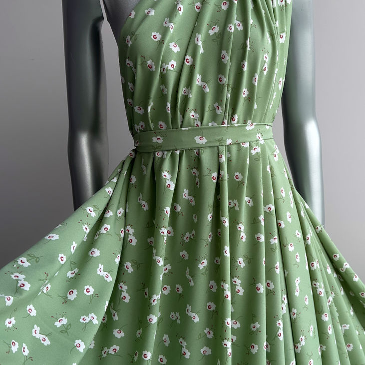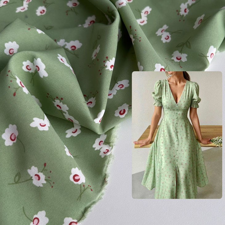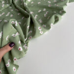 Рекомендації: Ця тканина чудово поєднується з аксесуарами у світлих тонах: молочному, карамельному, блідо-рожевому чи золотистому. Обирайте фасони з рукавами-буфами, поясами, зібраними спідницями або воланами — саме в таких силуетах цей принт розкривається найкраще.