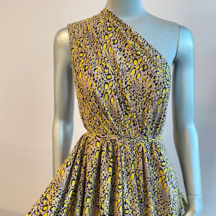 Рекомендації: Ця тканина чудово виглядає у фасонах зі спущеною лінією плеча, рукавами-ліхтариками, вільним кроєм, асиметрією чи воланами. Ідеально поєднується з нюдовими, білими або яскраво-жовтими деталями. Образ із такої тканини виглядатиме свіжо, нестандартно й водночас дуже жіночно — як для міських прогулянок, так і для відпустки.