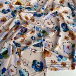 Суперсофт бежево-молочного кольору з акварельним принтом синіх і бірюзових квітів